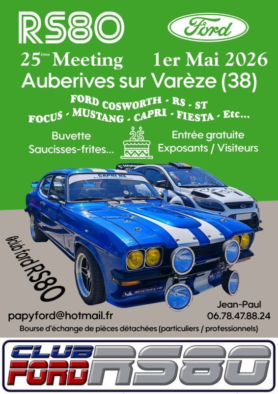 Rassemblement de véhicules ford, sportifs et de collection, entrée libre et gratuite pour tous, restauration sur place, buvette, tombola gratuite pour les exposants, cadeaux, animation.