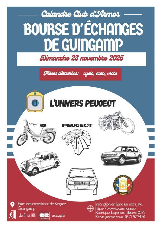 Le Calandre Club d’Armor organise sa 34e bourse d'échanges et exposition de véhicules sur le thème "Peugeot et tout son univers ».