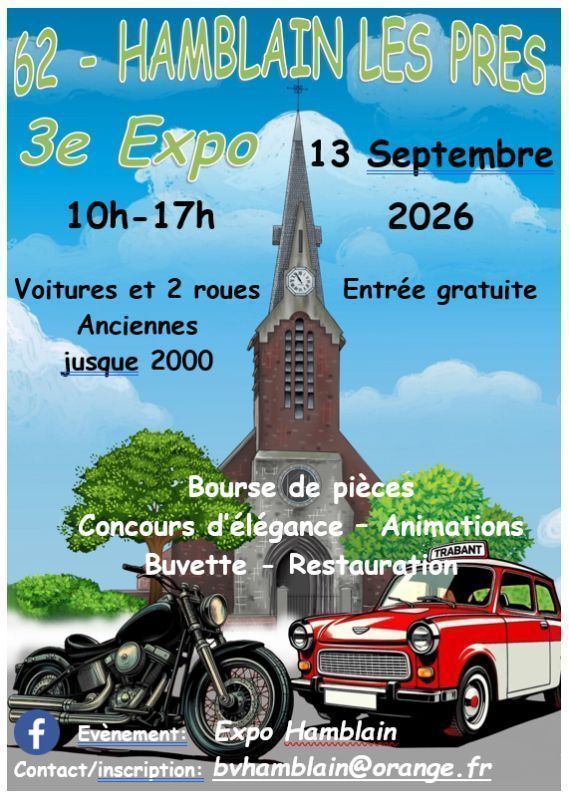Entre Arras, Douai et Cambrai, la 3e de notre expo compte sur vous pour dépasser encore cette fois la centaine de véhicules réunis au cœur de notre village !