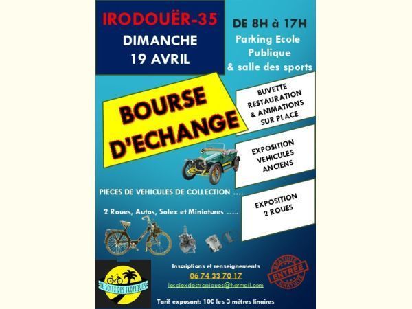 Bourse d'échanges de pièces de véhicules de collection, autos, motos, deux-roues, Solex, miniatures.