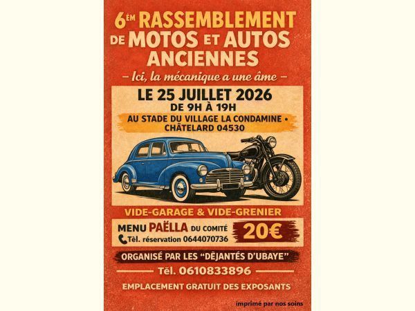 Rassemblement motos et Autos Anciennes se déroulera sur le stade du village