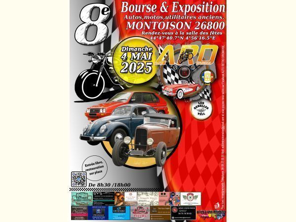 Venez vivre une journée exceptionnelle dédiée aux passionnés de voitures ! Nous vous invitons à notre 8ème Bourse et Exposition de Véhicules Anciens, Sportifs et de Prestige, le dimanche 04 mai 2025 de 8h à 18h à la Salle des Fêtes de Montoison.
