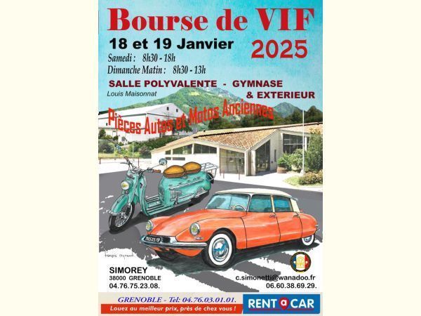 Chaque année, l’équipe de l’association SIMOREY organise à Vif (38 – Isère) une bourse d’échange de pièces automobiles et motos anciennes.