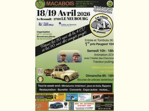 Entrée du Rassemblement 2€ (1 entrée gratuite pour les visiteurs en voiture ancienne)