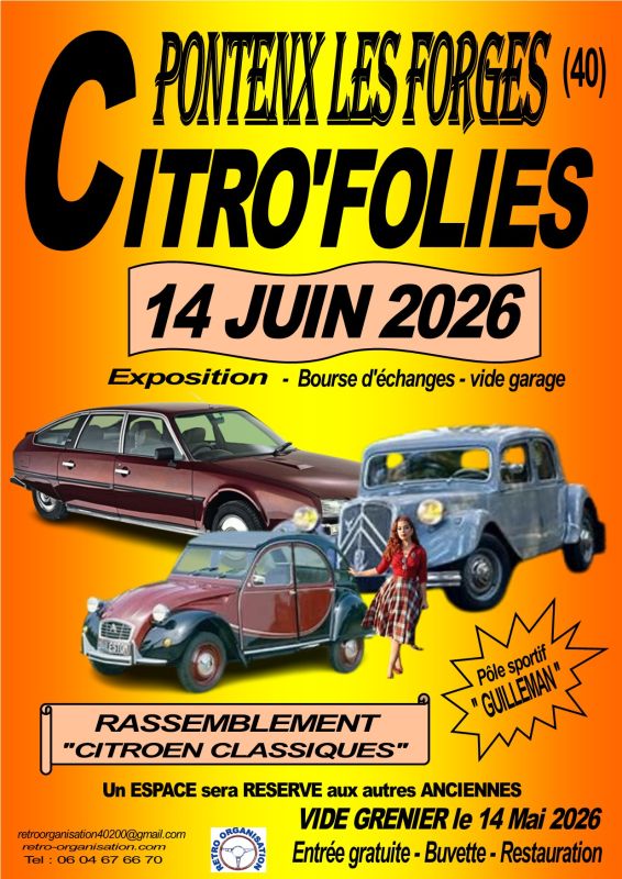 RASSEMBLEMENT et EXPOSITION de tous véhicules légers et utilitaires de la marque CITROEN ( AC4,B2, B14, 2CV, Acadiane, méhari, Traction, BX, ZX, AX, CX,ZM, C15, C35, DS, HY, etc...... sur vaste Parking