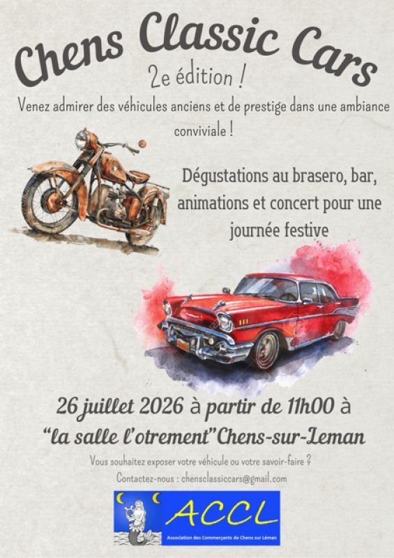 Amateurs d'ancienne voitures et de véhicules d'exceptions venez nous joindre au Chens Classic Cars 2ème édition sur le merveilleux site de la salle Otrement Chens 74140 Chens sur Léman