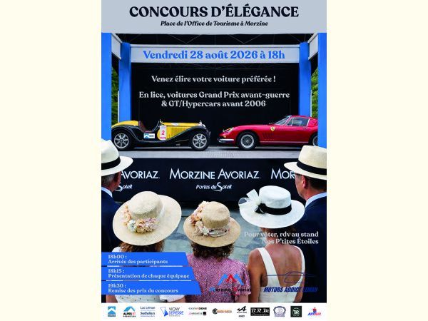 Dans le cadre de notre manifestation automobile Motors Addict Léman Classic 8ème, nous avons le plaisir de vous annoncer l’organisation d’un Concours d’Élégance exceptionnel au cœur de Morzine le vendredi 28 août à partir de 18h, sur la Place de l’Office de Tourisme.