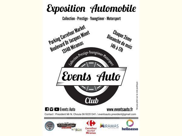 Chaque 2e dimanche du mois de 14h à 17h, le Club Events Auto organise une exposition automobile sur le parking Carrefour Market Miramas. Collection Prestiges Youngtimers Motorsports.
