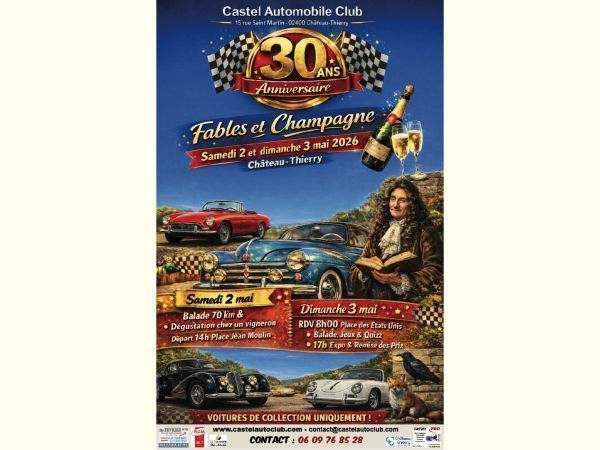 Retour sur Château Thierry à partir de 16h30, pour exposition des voitures sur la place des Etats Unis, et