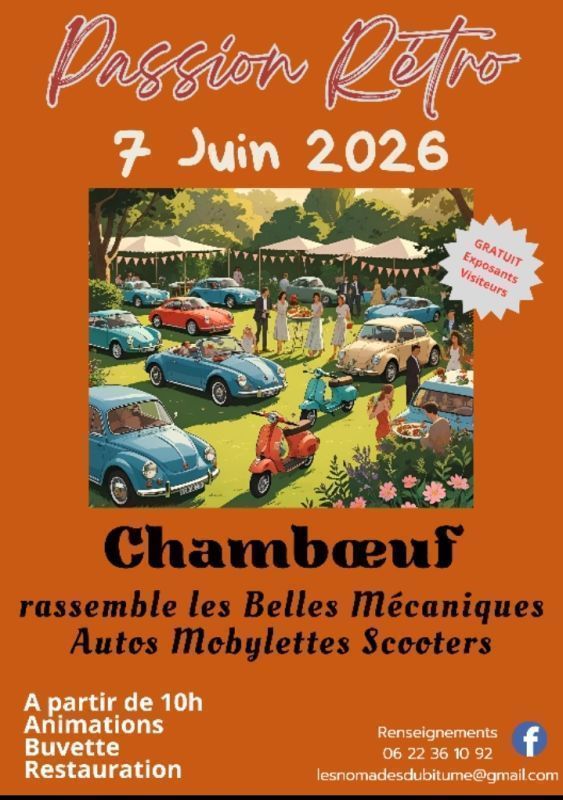 Le dimanche 7 juin 2026 Chamboeuf, dans le département de la Loire, rassemble les belles mécaniques et véhicules anciens ainsi que les mobylettes.