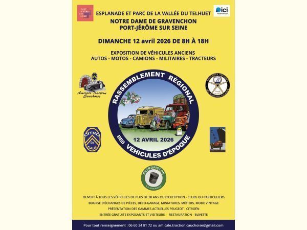 Présentent la 6ème édition du Rassemblement Régional des Véhicules d’Epoque (autos, motos, scooters, camions, utilitaires, autocars, militaires, tracteurs, engins, moteurs fixes, etc.).