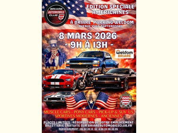 Rassemblement gratuit de véhicules 'EDITION SPECIALE 100% AMERICAINES' à BRIARE Parking Weldom