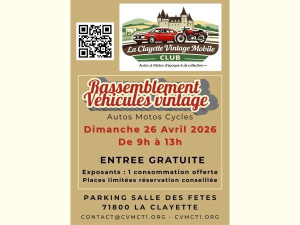 Rassemblement de véhicules d'époque et vintage organisé par La Clayette Vintage Mobile Club.