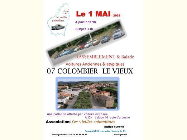 le 1er mai rassemblement de voiture ancienne, sportive, atypique à colombier le vieux à partir de 9h.