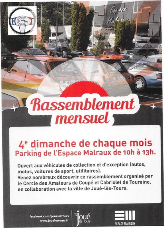 Rassemblement Mensuel confirmé en juin, organisé par le C.A.C.C.T. avec le concours de la ville de Joué-Lès-Tours et de l'espace Malraux à Joué-Lès-Tours dans le département de l'Indre-et-Loire.