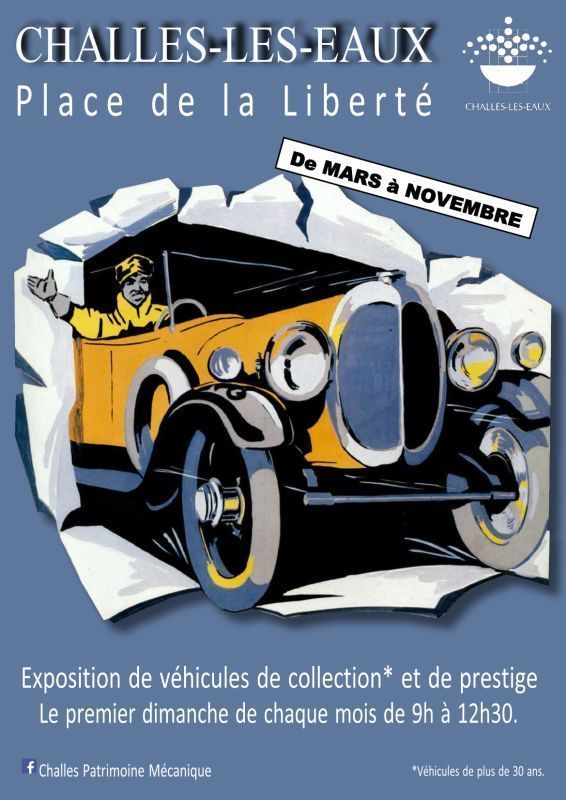 Rassemblement mensuel de voiture de collections et de prestiges chaque 1er dimanche de mars à novembre sur la place de la Liberté à Challes les Eaux (73)
