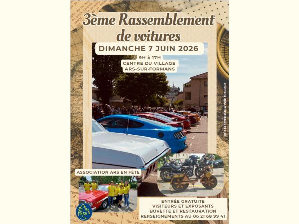 Nous vous donnons rendez-vous le Dimanche 7 Juin 2026 de 9h à 17h au centre du village très touristique d'Ars sur Formans 01480.
