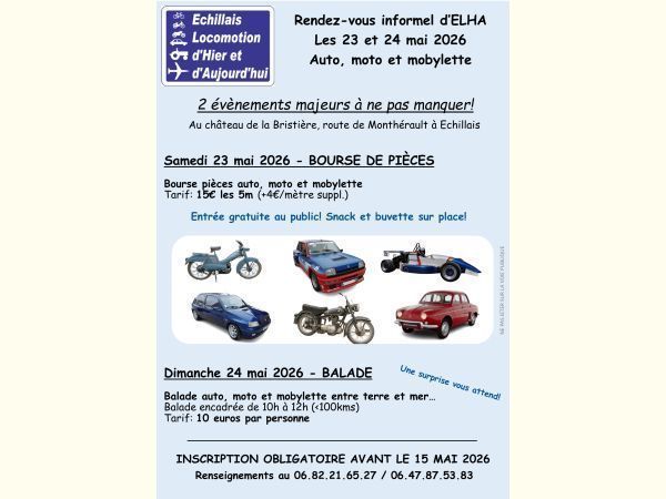 Rendez-vous informel de passionnés 2 et 4 roues et bourses d'échanges le samedi et balade organisée le dimanche