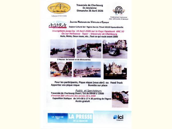 Traversée de Cherbourg en Ancienne , balade d'environ 2h30, le road-book permet à chaque équipage de gérer le temps consacré à la visite des différents points à visiter