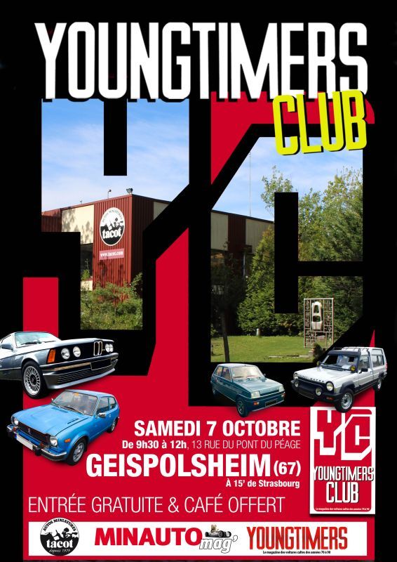 Le rendez-vous mensuel des amoureux des véhicules des années 70 à la fin des années 90, le Youngtimers Club : Alsace se tient chez Tacot au 13, rue du Pont du Péage à Geispolsheim, tous les premiers samedi du mois de 9h30 à midi !