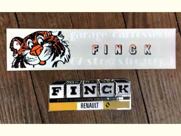 Précisions transmises par le vendeur : Grand autocollant vintage Finck garage carrosserie Strasbourg 24 x 4.7 cm petit autocollant Finck Renault garage Strasbourg Koenigshoffen 9,5 x 3,5 cm.