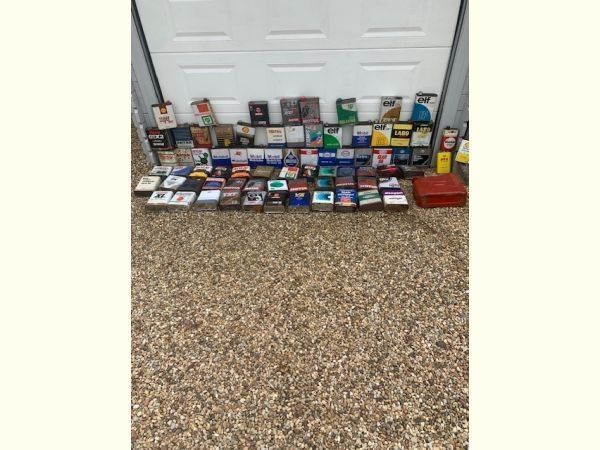 Bidon d'huile ancien métal vintage : lot important, vendu au détail ou petit lot, possibilité d'envoi, prix selon modèle et quantité. (entre 5€ l'un et 10€ les deux)