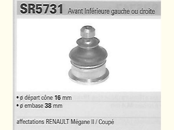 Précisions transmises par le vendeur : Equivalent MGA SR5731. Megane I break, Megane II berline/break/coupé. Détail des modèles concernés par mail, trop long pour l'annonce : avant inférieure gauche ou droite.