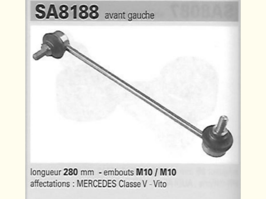 Précisions transmises par le vendeur : Paire de biellettes stabilisatrice AV G/D entre axe 250mm, Mercedes classe V tous modèles sauf CDI de 09/96 à fin, Vito tous modèles de 04/96 à 08/03.