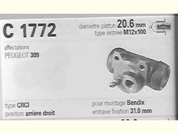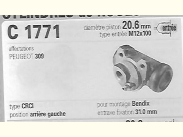 Marque de la pièce : MGA Référence de la pièce : C1771/C1772 Type de la pièce : Gauche et droite Nombre d'exemplaires : 2 Catégorie : Cylindres de Roues Arrière