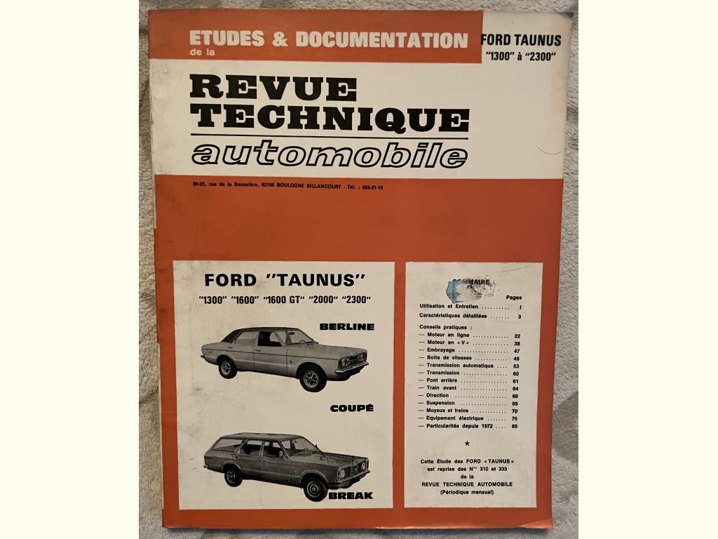 Précisions transmises par le vendeur : Revue Technique Automobile de 1974 pour Ford Taunus 1300, 1600, 1600 GT 2000 et 2300 (Berline, coupé et break) 112 pages.