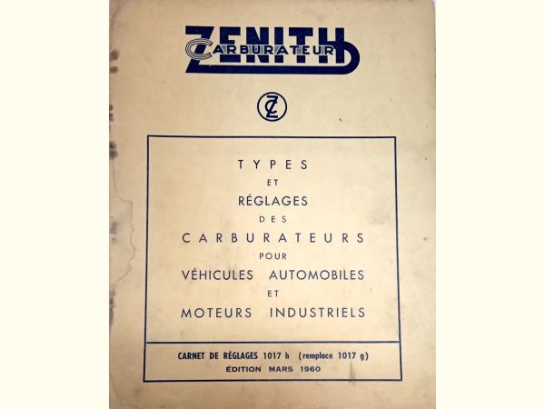 Précisions transmises par le vendeur : Carnets équipement et réglages des carburateurs Zenith Stromberg 1960, 20 pages