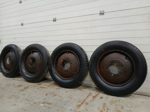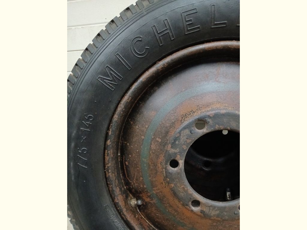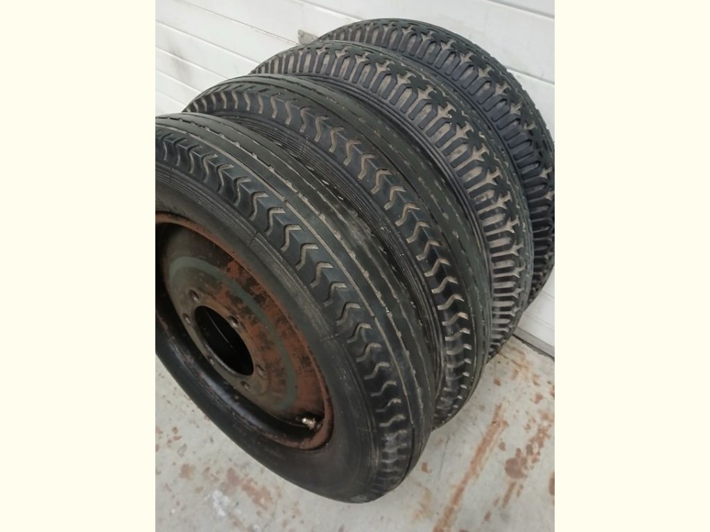 Précisions transmises par le vendeur : 4 roues 775x145 6 trous 2 pneus à talon MICHELIN double rivet 2 pneus à talon ENGLEBERT Ballon