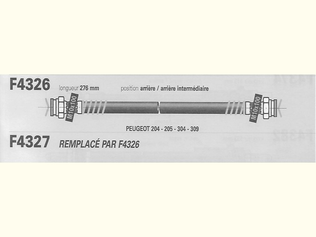 Marque de la pièce : MGA Référence de la pièce : F4327 Nombre d'exemplaires : 2 Catégorie : Flexibles de Freins Arrière