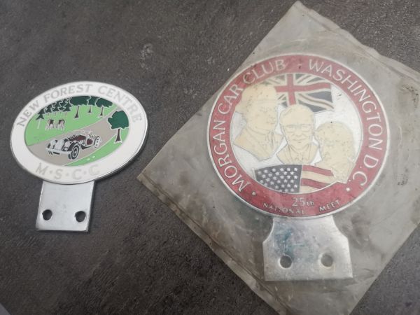 Précisions transmises par le vendeur : Badge insigne état neuf. 1 badge Morgan car club Washington 25th National meet à 140 euros et 1 badge insigne new forest centre M. S. C. C à 40 euros.