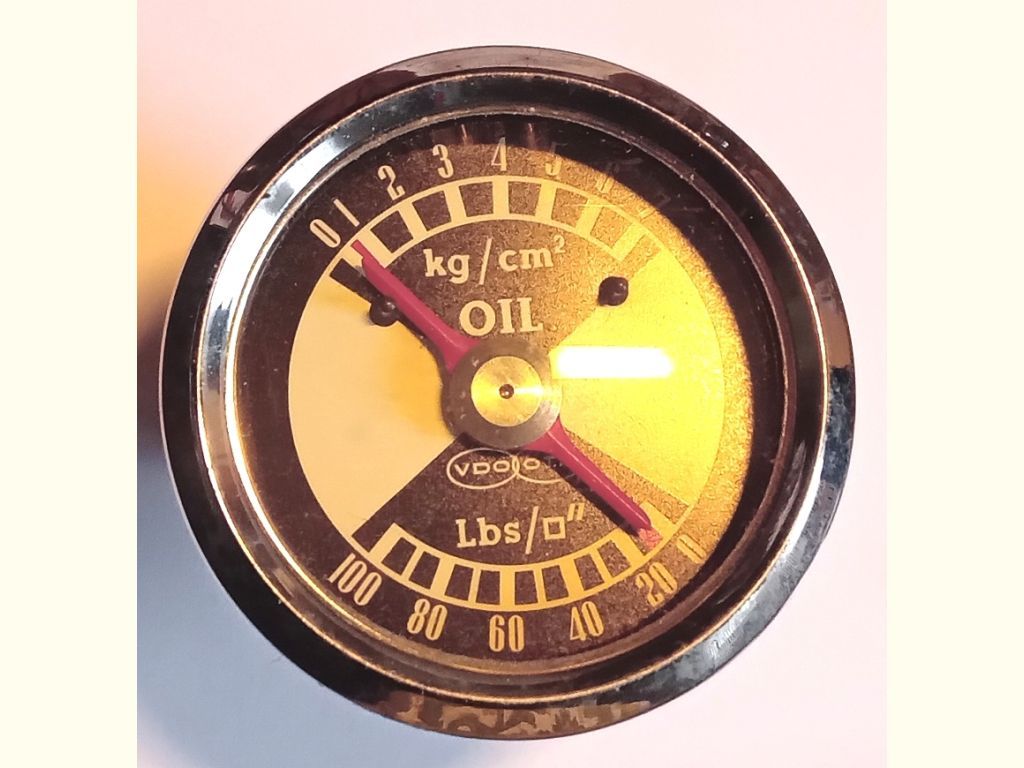 Précisions transmises par le vendeur : Cadran de pression huile kg/lbs VDO sans capillaire testé ok, corps 52mm.