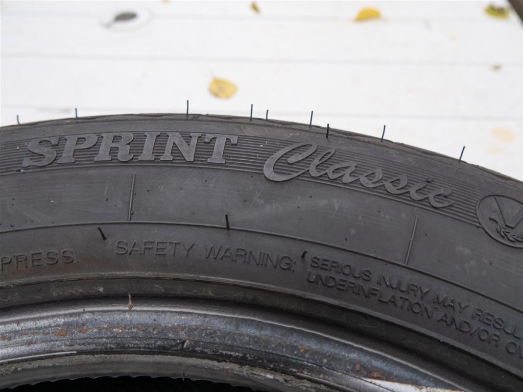 Pièces de marque VREDESTEIN portant la référence 135/14/80 et de type Sprint Classic.