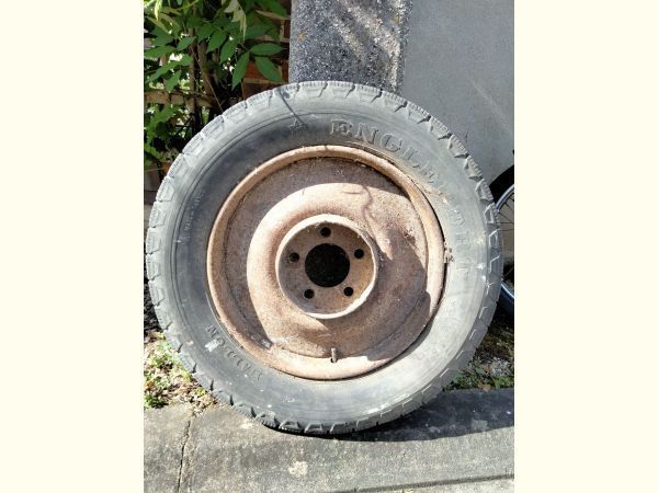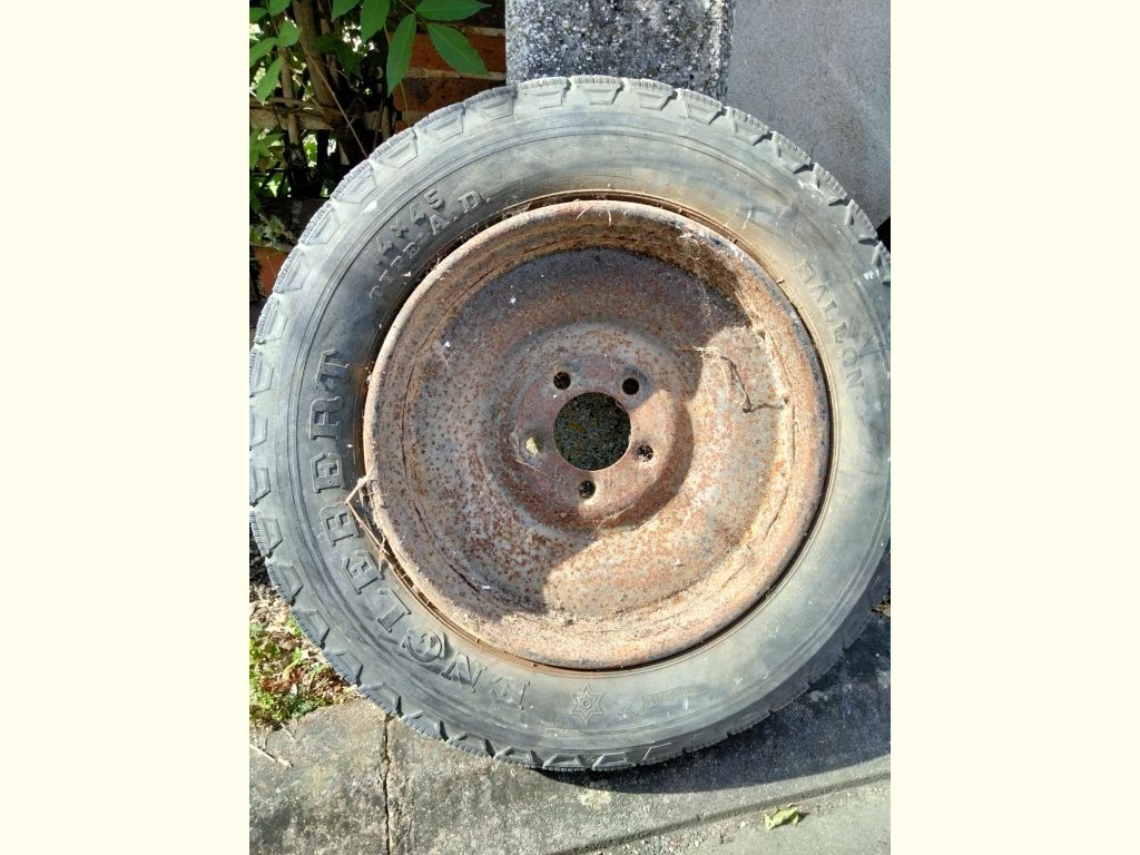 Précisions transmises par le vendeur : Roue auto ancienne Renault. Modèle pouvant convenir pour Mona ou Celta. Dimensions : 14x45, 5 trous. A récupérer sur place.