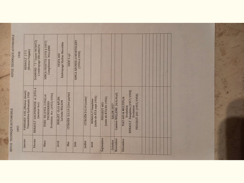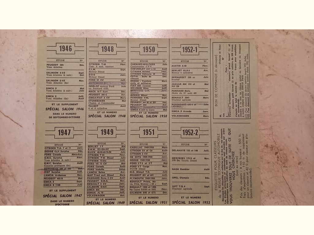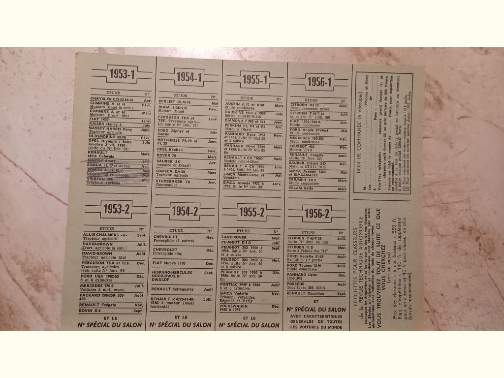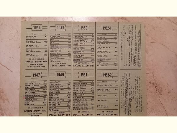 Précisions transmises par le vendeur : Liste des RTA en ma possession toutes marques de 1946 à 1958 , 15€ l'unité plus port .