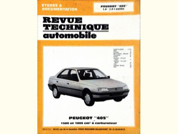 Précisions transmises par le vendeur : RTA Peugeot 405 1,6 et 1,9l carbu