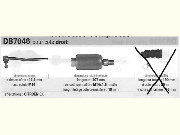 CITROËN CX modèle avec rotule extérieure 310mm, de 07/80 à fin ref 95 606 877 : coté droit équivalent MGA DB7046.