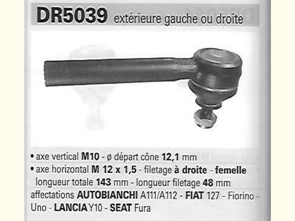 Précisions transmises par le vendeur : Filetage M12x1,50 : extérieur gauche droit équivalent MGA DR5039. Détail des modèles concernés par mail, trop long pour l'annonce