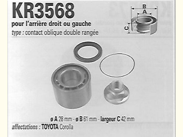 Corola tous modèles sauf 1,6 Gti, de 9/87 à 7/92. roulement 28x61x42 : Gauche ou droite équivalent MGA KR3568.