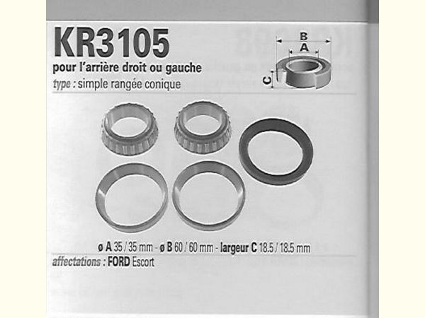 Fourgonnette tous modèles de 9/90 à 12/90, courrier livraison van de 10/90 à 12/90, pour tambour simple et moyeu, 2 roulements 35x60x18,5 : Gauche ou droite équivalent MGA KR3105.