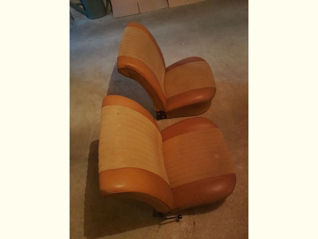 Précisions transmises par le vendeur : Faire offre pour 2 sièges avant de Simca 1000 skaï et tissu couleur ocre/ marron clair très bon état