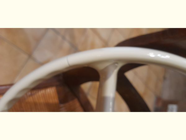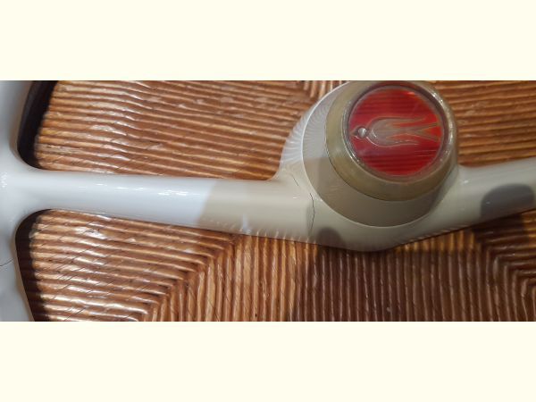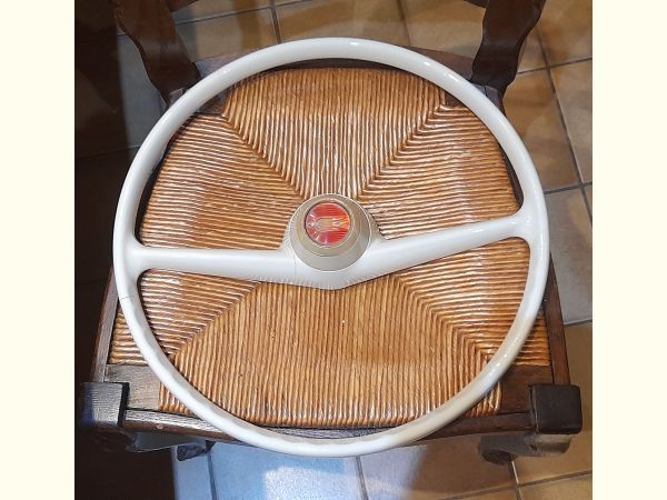 Précisions transmises par le vendeur : Volant Quillery d'occasion pour Simca Aronde 90 A. Il à été repeint de couleur ivoire. État voire photos. Vendu avec le centre de volant.