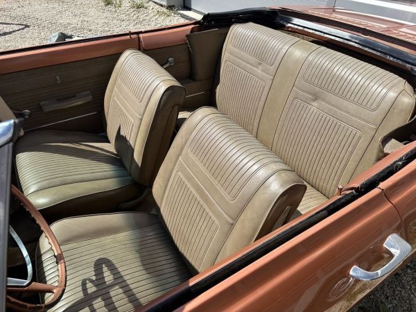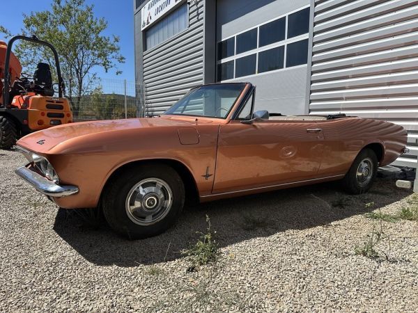 Précisions transmises par le vendeur : À vendre en France : Chevrolet Corvair cabriolet millésime 1965, seconde génération, ligne affinée et moteur flat-6 refroidi par air en position arrière
