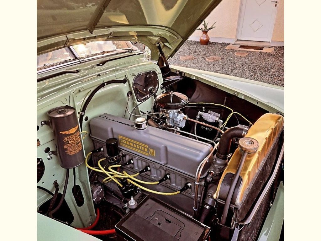 Sous le capot, on retrouve un 6 cylindres 261 ci, une base réputée, ici associée à un collecteur Fenton et à un échappement double ligne, pour un ensemble à la fois plus vivant, plus noble et plus cohérent avec l’esprit de l’auto