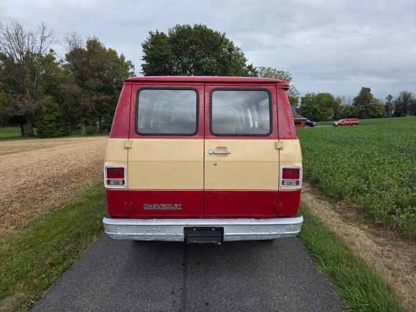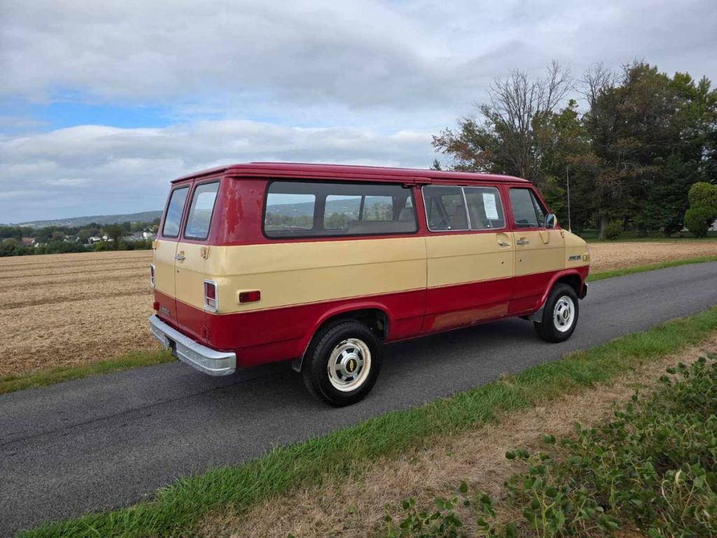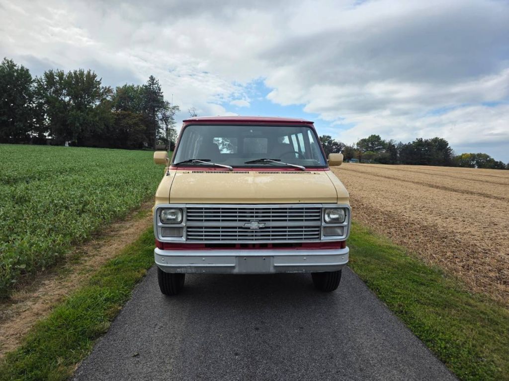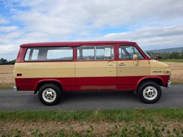 Précisions transmises par le vendeur : Un véhicule de collection en vente est un Chevrolet G 30 de l'année 1983, équipé d'un moteur de 5,7 litres à huit cylindres et une boîte automatique de transmission. Le véhicule est peint en rouge-brun et possède un intérieur de couleur beige. Les kilomètres immatriculés sont indiqués sur le papiers d'enregistrement du véhicule.