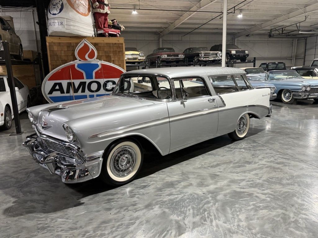 Ce véhicule est un Chevrolet Nomad de 1956 avec un kilométrage affiché de 86 000 miles, noté sur le titre d'Indiana