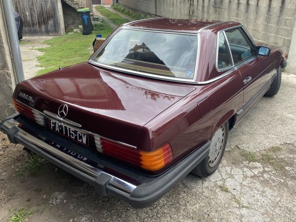 Particulier vend MERCEDES Roadster SL (Type R 107 de 1986) de 1986 en bon état. Ce véhicule restauré en version cabriolet est complet.